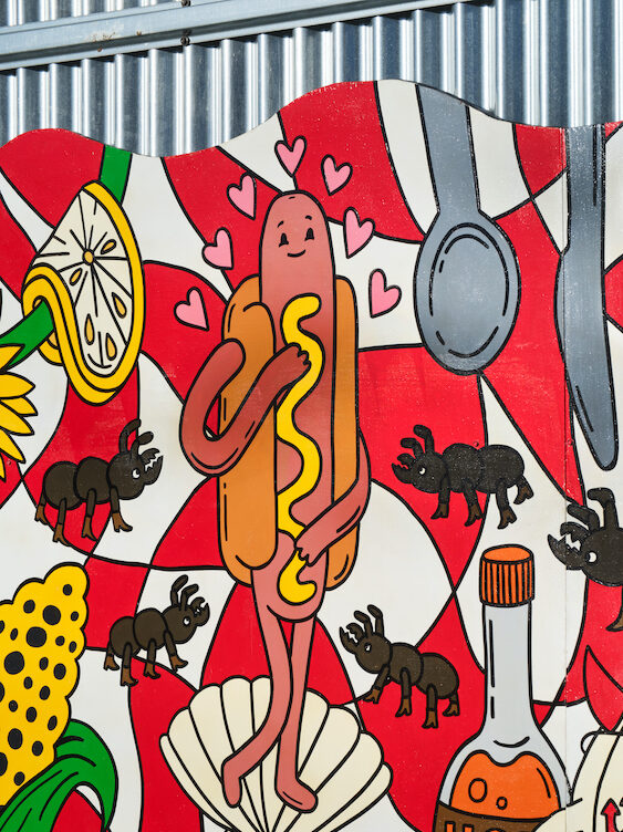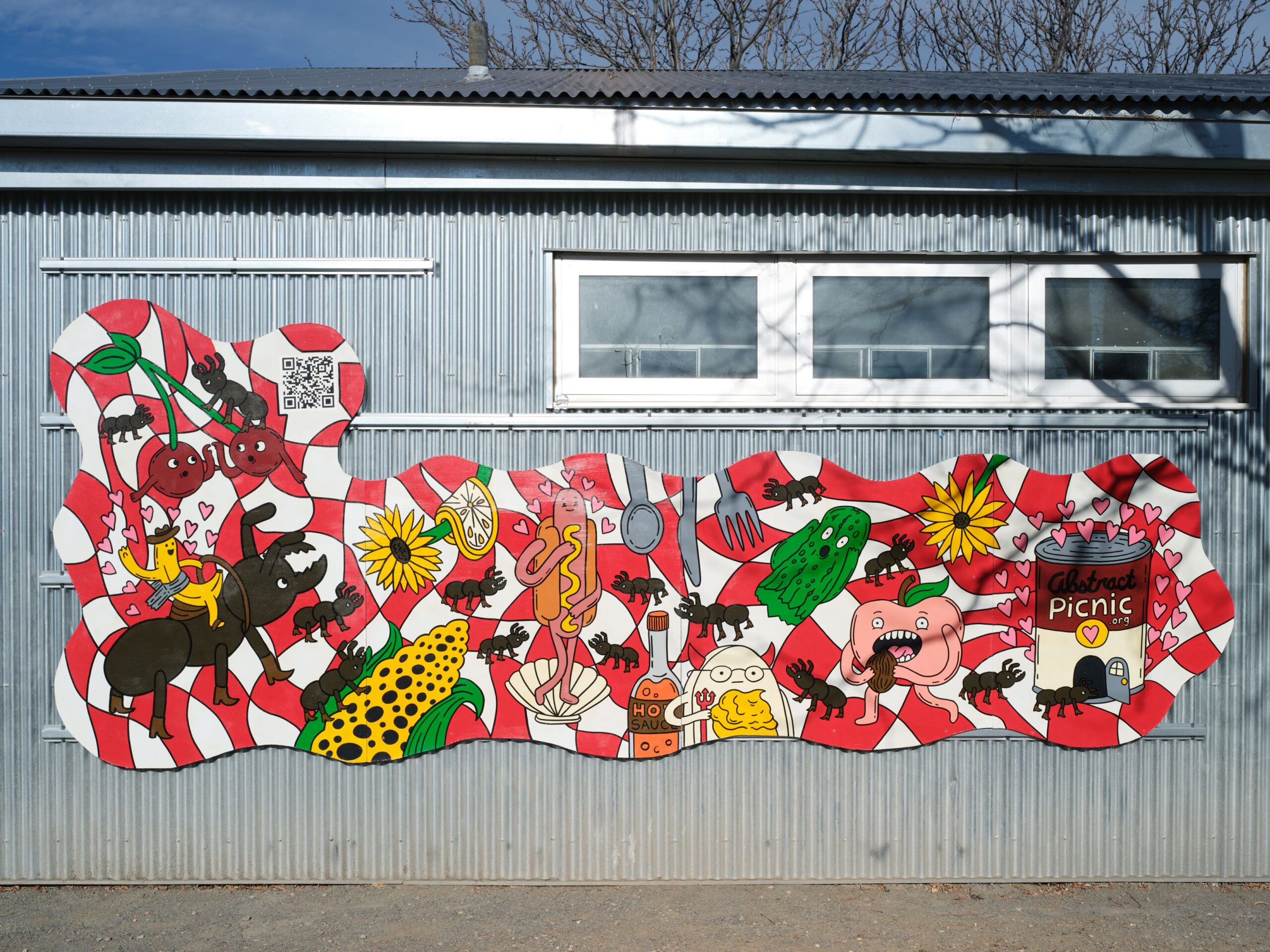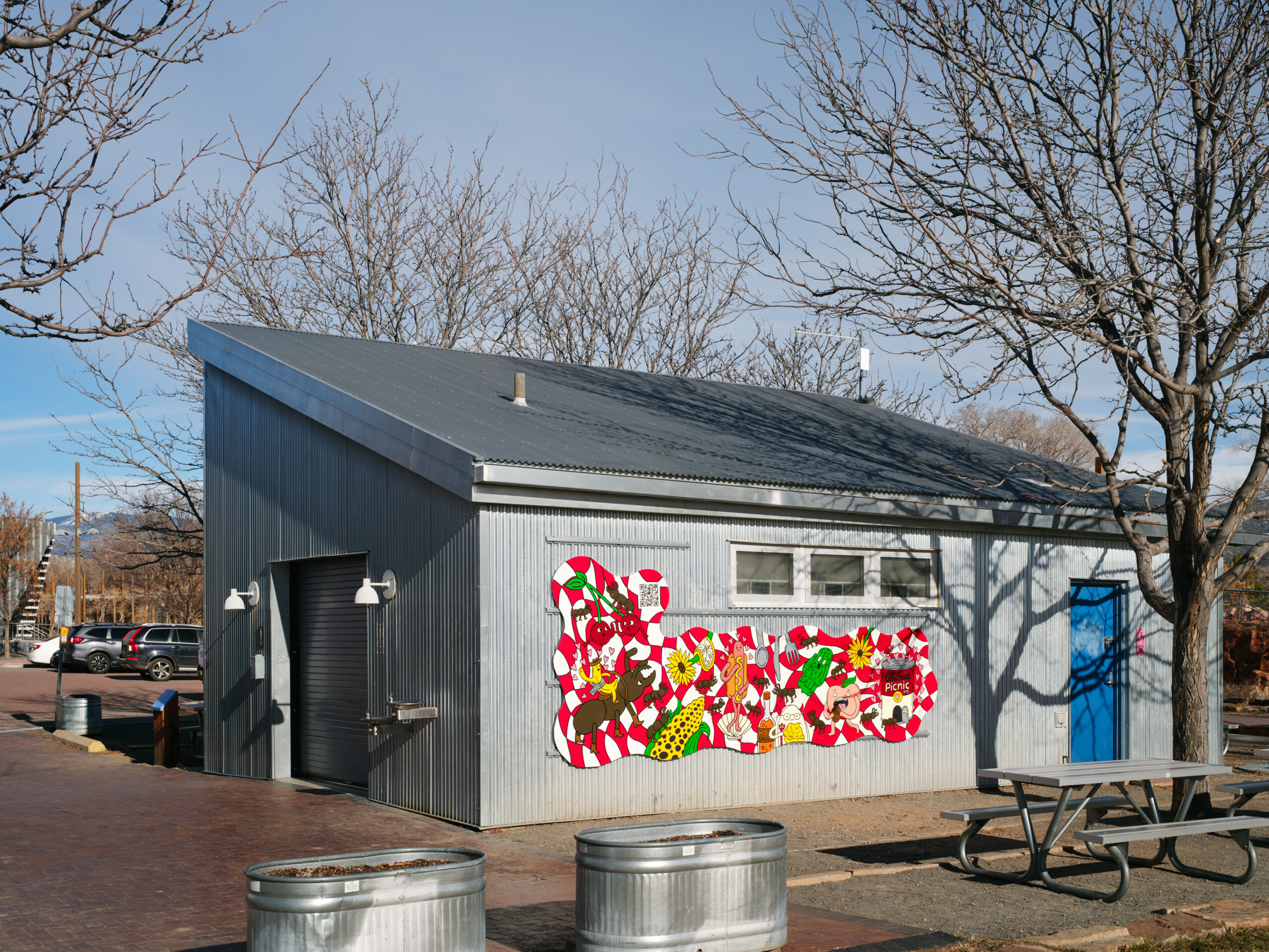 Created by local arts collective Abstract Picnic, and currently gracing one of the park’s community buildings, Life’s a Picnic! is a vibrant, large-scale mural meant to celebrate the playful, natural joy and community spirit of the American picnic. “Picnics unite people with the intention of being present and enjoying life,” noted a member of the collective. “We hope the imagery brings people joy, encourages communal gatherings, and provides amusement with the historical art references throughout the piece.”